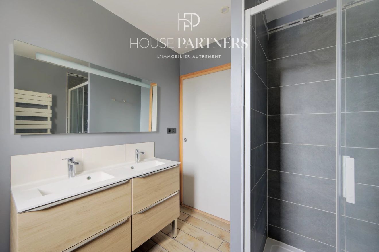 Vous y trouverez au rez-de-jardin : une entrée, une cuisine américaine aménagée sur un double séjour lumineux et agréable, une chambre parentale avec entrée indépendante et une salle de douche avec toilette.